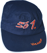 Adult Cap So 1, that means Number 1 in vietnamese language. Dark blue color fabric. Raspberry embrodery.